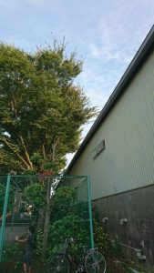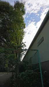 南町児童公園内の樹木が隣接する工場の屋根まで伸び、工場管理者の方から「毎年、工場の雨どいに落葉が大量に落ちて困っている。剪定してくれいなか」との相談を受け、10月10日、市担当課に要望したところ、同月21日、伸びすぎた枝の剪定が行われました。21日は、公園北側と東側の樹木の剪定が行われ、今週末に南側と西側の樹木の剪定が行われる予定とのことです。迅速に対応してくださった市担当課に感謝です。