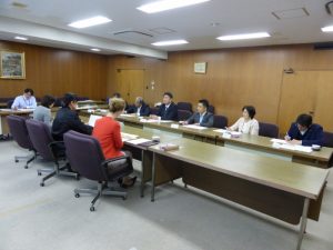 【総務委員全員で、市内在住の外国人の方々から意見を聞きメモを取っている写真です。写真奥、右から3番目が私です】