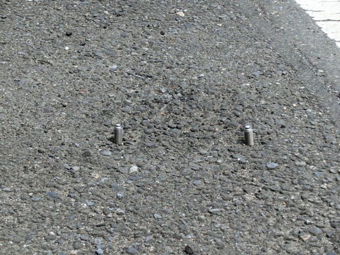 現場を確認すると、いま残っている車止めのボルトも緩んでいたので、いたずらで外されたような感じがしました。ただ、外された車止めのところは、ボルトが地面から飛び出している状況(写真参照)で大変、危険な状況であったため、担当課に直ぐに対応するよう要望しました。